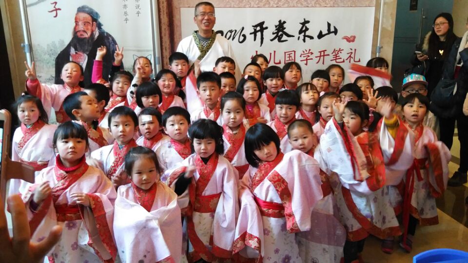 “開筆禮”是中國古代對少兒開始識字習(xí)禮形式的稱謂,俗稱“破蒙”,被稱為人生四大禮之一。活動當(dāng)天,50名小朋友身著漢服,共同拜祭儒家學(xué)派的創(chuàng)始人――孔子。隨后在國學(xué)老師的帶領(lǐng)下,進行正衣冠、拜先師、朱砂啟智、寫“人”字等儀式。最后大家一同拜謝老師,合影留念。
